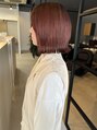 ブリーチ無しダブルカラーでピンクベージュカラーです!色落ちが金髪にならないのでとてもオススメのカラーです!パツっとラインのボブと相性抜群のカラーです♪