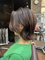 32mmのコテでフロントリバース、サイド外はねに。顔周りにレイヤーを入れ全体は切りっぱなしボブ