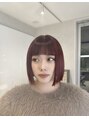 ワンブリーチ必須です!!鮮やかすぎず、暗すぎず、大人っぽおしゃれカラーですレッド、オレンジ、ピンクを絶妙に混ぜております♪切りっぱなしボブ重ためで前髪もぱっつんですね><