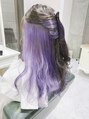 ロングヘア インナーカラーブルーパープルカラー☆ブリーチ