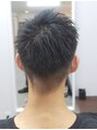 前髪に向かってツーブロック。そこから後ろはカリアゲの爽やかスタイル。襟足に向けてキュッと引き締まったシルエットが、男らしく決まりつつ清潔感もバッチリです。これから忙しくなる年末…ぜひ髪型をスッキリさせて気持ちよく過ごしませんか?