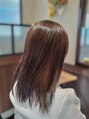カラー☆イヤリングカラー部分がブリーチで色が抜けてたので、全体的にグレージュ系をかぶせました。カット☆15センチカットして段は入れず毛量調整。トリートメント☆3ステップトリートメントでさらさらに仕上げました。