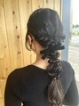 トレンドのあみおろしスタイルです。サイドから編み込んで華やかさを出しています。ミディアム~ロングさんオススメです!飾りのベロアのリボンが似合いますね^^
