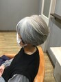 シルバーヘアの内側にアクセントカラーちらっと見えるブルーが素敵!