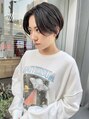 大人かわいい前下がりのハンサムショートはシャープに切ったライン、襟足をしめスッキリ見せたりと、メリハリを効かせステップボーンカットで絶妙なバランスに!カラーはアッシュブラックでつや感、質感をプラスし大人見えメンズライクなヘルシースタイルに!