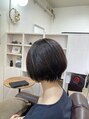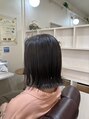 切りっぱなしボブスタイルコテ巻きでふんわりアレンジ仕上げ