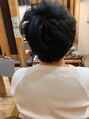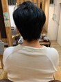 バックの後頭部下のシルエットを閉めこむことで全体のシルエットにまとまりが出来るのでディスコネクション(つながりのないブロック状)にカットをさせて頂きました