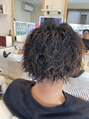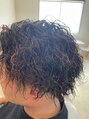 ツイストスパイラルを強めにかけ、トップ残しでツーブロックに仕上げ、スッキリ感も出しました。