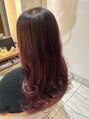 バーガンディーカラーが可愛いですね。根本は白髪が気になるとのことでしたので根本のみ白髪染めをさせて頂いています。今回はトリートメントもさせて頂いているので艶々になりました。