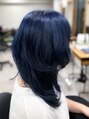 ネイビーブルー/ウルフカット/ロングウルフ/ブリーチ/上大岡/ホットペッパービューティー