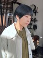 コンパクトなマッシュショートスタイル。ブリーチ無しのベースから青味を濃く配合した、ブルーグレーのカラーリング。