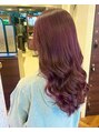 ブリーチ無しカラーです。ボンドカラーバイオレットピンクとローズを調合しました。旧ペンタカラーRGを微量混ぜました。