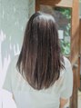 今トレンドの顔まわりにハイレイヤーが入ったスタイルです。顔まわりのレイヤーと対比して、バックはしっかり目に重みを残しているので、かっこいい雰囲気や個性的なイメージには偏ることなく軽い印象に見せてくれます。