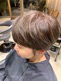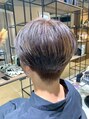 えりあしを刈り上げた耳掛けショートスタイル。全体的にウィービングを入れ、その上からシルバーベージュ系の色をのせました^ ^色が落ちてきてもウィービング部の色の違いで楽しめるスタイルです♪