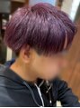 横と後ろをすっきり刈り上げた軽やかなマッシュスタイル!黒染め歴のあるお客様でしたが、ブリーチ1回でムラなく派手すぎない大人パープルに大変身しました!
