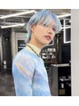 水色カラー/センターパート/韓国ヘア