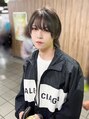 カットはマッシュウルフベースのスタイルに顔まわりは引き締め効果を狙いアーチバングにカット。バックのウェイト(膨らみ)は耳の位置に設定。カラーは2ブリーチベースのフェイスフレームカラーに6グレーをオン。光の当たり方で透明感が出ます。