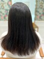 髪を伸ばしているお客様。ようやく毛先が肩を越えて収まりやすくなってきたそう。なるべく長さは残しながら、毛先の枝毛予備軍をカット。髪質改善トリートメントで髪の内部にケラチンや脂質などトリートメント成分を補充。ハリとツヤのある仕上がりです◎