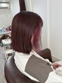 ピンクバイオレットカラー!インナーからも紫メインのピンクっぽさを出した絶妙なカラーに◎統一感を出すインナーカラーは、可愛さ抜群◎カットは、切りっぱなしに。重たくならないように重たさをとって!