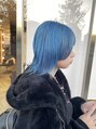 姫カットとウルフスタイルを合わせたスタイルです!カラーはマリンブルー!一度ブリーチで色を抜いております!