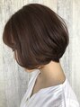 前下がりショートボブ、前下がりに見えすぎないように丸みの出る段差をつけてあります。カラーはイルミナカラーでコーラルベージュに仕上げてます。