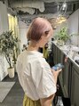 - ハイトーンピンクにぱつっとしたミニボブを合わせました。