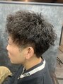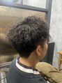 ツーブロック、刈り上げのショートスタイルに強めのツイストパーマを合わせたスタイルです
