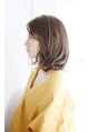 かきあげた前髪に鎖骨ラインのカールスタイルです。毛先のニュアンスカールは柔らかい動きをだした人気のスタイルです。