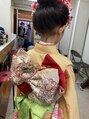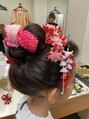 七五三、七歳女児、日本髪、しっかりした髪でした。まげ、左右対称に、バランスとりました。