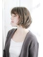 透け感のあるマットベージュ系のカラーが可愛い外ハネゆるカールは動きがあり、ボブにアレンジが欲しい方にオススメのスタイルです。