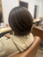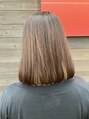 ここ数回、カラーをされる時のテーマは『透明感』です!アッシュ系にしたりグリーン系にしたりと色々なカラーを楽しまれていて、今回は+ツヤ感でしてみました!元々、黄色っぽくなりやすい方なのでパープル系で黄色感を消すカラーをさせていただきました!