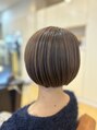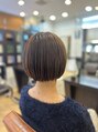 まだまだ人気のミニボブ。ぷつっと感は残しつつ、収まりが良くなるようにセニングを使用せず、スタイリング専用オイルで仕上げました。
