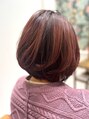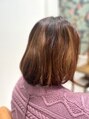 トップに丸みが出づらい頭の形と、細くやわらかい髪質。首元をスッキリするよう長さを決めて、量を軽くすることで、首後ろのボリュームが減り、トップのボリュームができたように見える♪ピンクブラウンのツヤ感がさらにかわいくマッチ◎