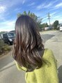 レイヤーカットに秋冬おすすめにダークトーンのグレージュ。透明感たっぷりでめちゃくちゃいい感じです