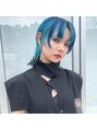 水色カラーにネイビーのアンブレラカラー、毛先には黒のエンドカラーを入れました!寒色系カラーで3色でも相性バッチリ!