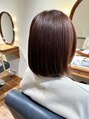 ボブから伸ばし中、肩につく長さで広がりが気になる頃なのでスッキリシルエットに。ポイントにフェイスラインにもレイヤーを。カラーは赤系ブラウンでツヤ感アップ。