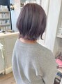 ダブルカラーで作るラベンダーカラーが、透明感バッチリでかわいいです♪♪ダメージレスなイルミナカラーで高発色(^^)仕上がりもツヤツヤです(o^^o)顎下ラインでカットしたぱたっとボブは外ハネにすることでよりカットラインが強調されてかわいい☆彡