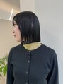 透明感のあるネイビーブラックとフラットなボブスタイル