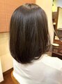 似合わせ小顔カット。人気の丸みのあるワンレングススタイルになります。黒髪、暗めの色でも軽さを出して柔らかい印象にできます。重くなりすぎないヘアスタイルなのでお手入れも簡単です。