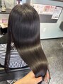 暗めグレージュカラーに、前回ブリーチしてた部分にくすみラベンダーカラーを。巻くとチラ見えします◎