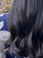 暗めグレージュカラーに、前回ブリーチしてた部分にくすみラベンダーカラーを。巻くとチラ見えします◎