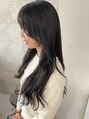 バングからサイドに繋がるレイヤーが入っています。おろしてもアップにしても可愛いヘアスタイル