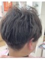 マッシュレイヤーのハンサムショート。サイド・ツーブロック、バック・刈り上げでスッキリと。トップはランダムに動きの出やすい長さに。9トーン・シナモンベージュでまろやかな仕上がりに。