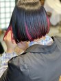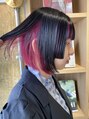 サイドにもラインを作ったミニボブ に、表面はブラックでインナーはピンクの2トーンカラースタイルです。