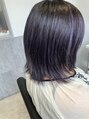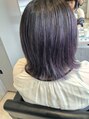 毛先はブリーチカラー。青もピンクも混ぜた紫カラー。色抜けした感じはくすんだブロンドのような抜けやすいです。軽いミディアムボブスタイル