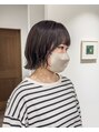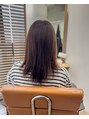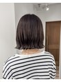 ミディアムからバッサリ首の真ん中の切りっぱなしボブ◯適当にゆるく巻いて、抜け感仕上げカラーは濃いめのラベンダーカラー