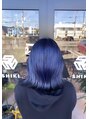 ブルー/ブルーカラー/ブルーブラック/ブルーグレー/アイスブルー/寒色/ブリーチカラー/ブリーチ2回/ハイトーンカラー/派手髪/裾カラー/裾ブラック/デザインカラー