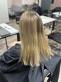バレイヤージュケアブリーチダブルカラー切りっぱなしボブ外ハネ