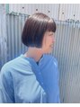 顎ラインでぱつっと切り揃えたすっきり爽やかなミニボブスタイルです。スタイリングも簡単で暑い夏はすっきりと。寒い冬はマフラーやタートルネックとも相性いいです。インナーカラーのブルーも色味のニュアンスを変えたりするとオールシーズン使えます!