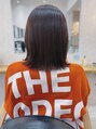 ぷつっと感のあるロブにラベンダーパールで黄みを抑え透明感のある暗髪に。光で透ける綺麗なカラーリングです。